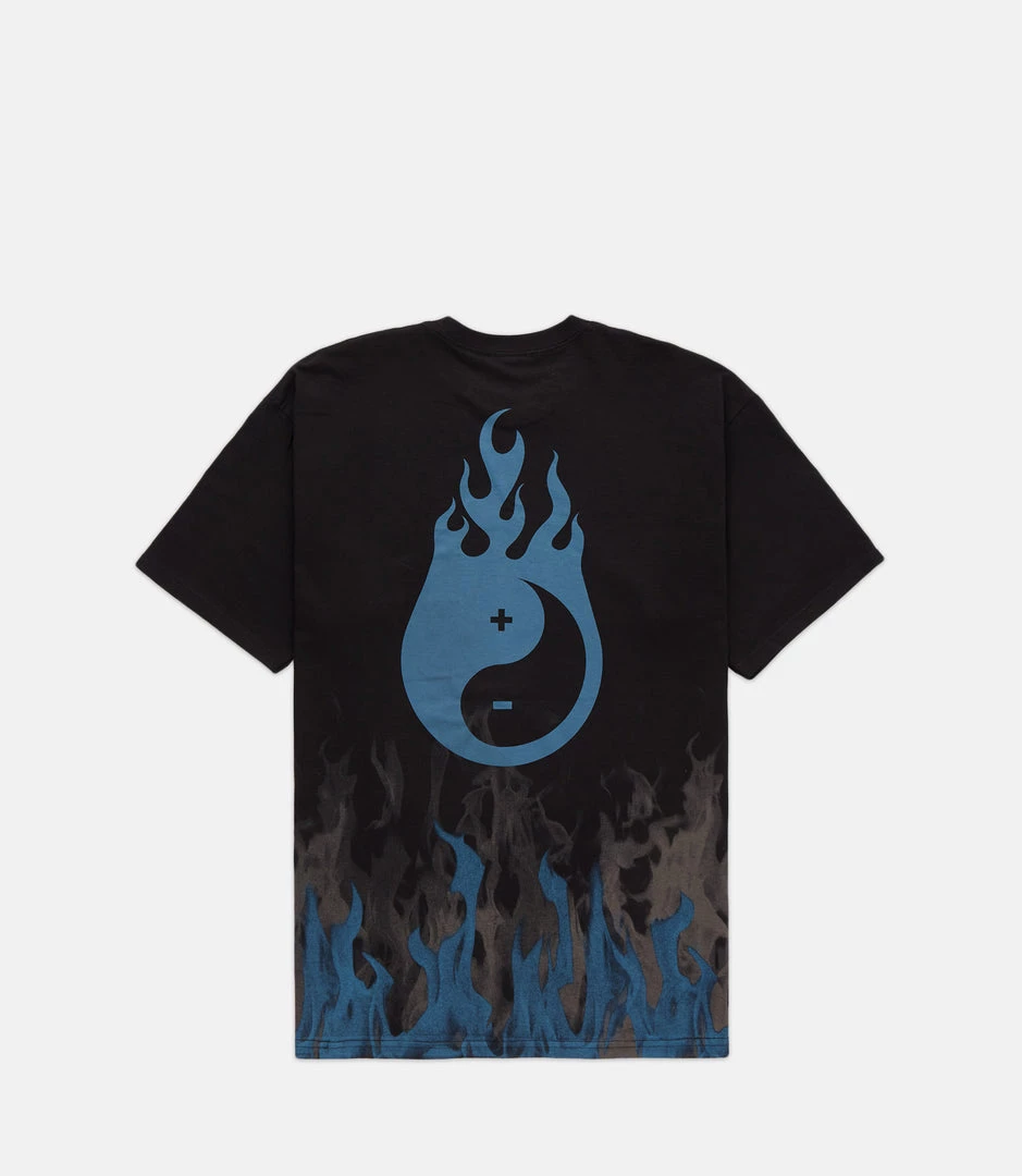 Stay in harmony with the natural order and find your balance with the Tao Tee. Custom panel print tee with graphics on the left chest and across the back.