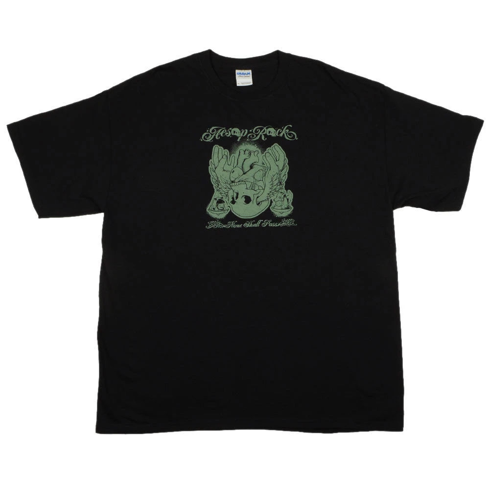Aesop Rock tee designed by visual artist Jeremy Fish in support of Aesop’s newest effort, “None Shall Pass”. Features a one color version of the cover art.