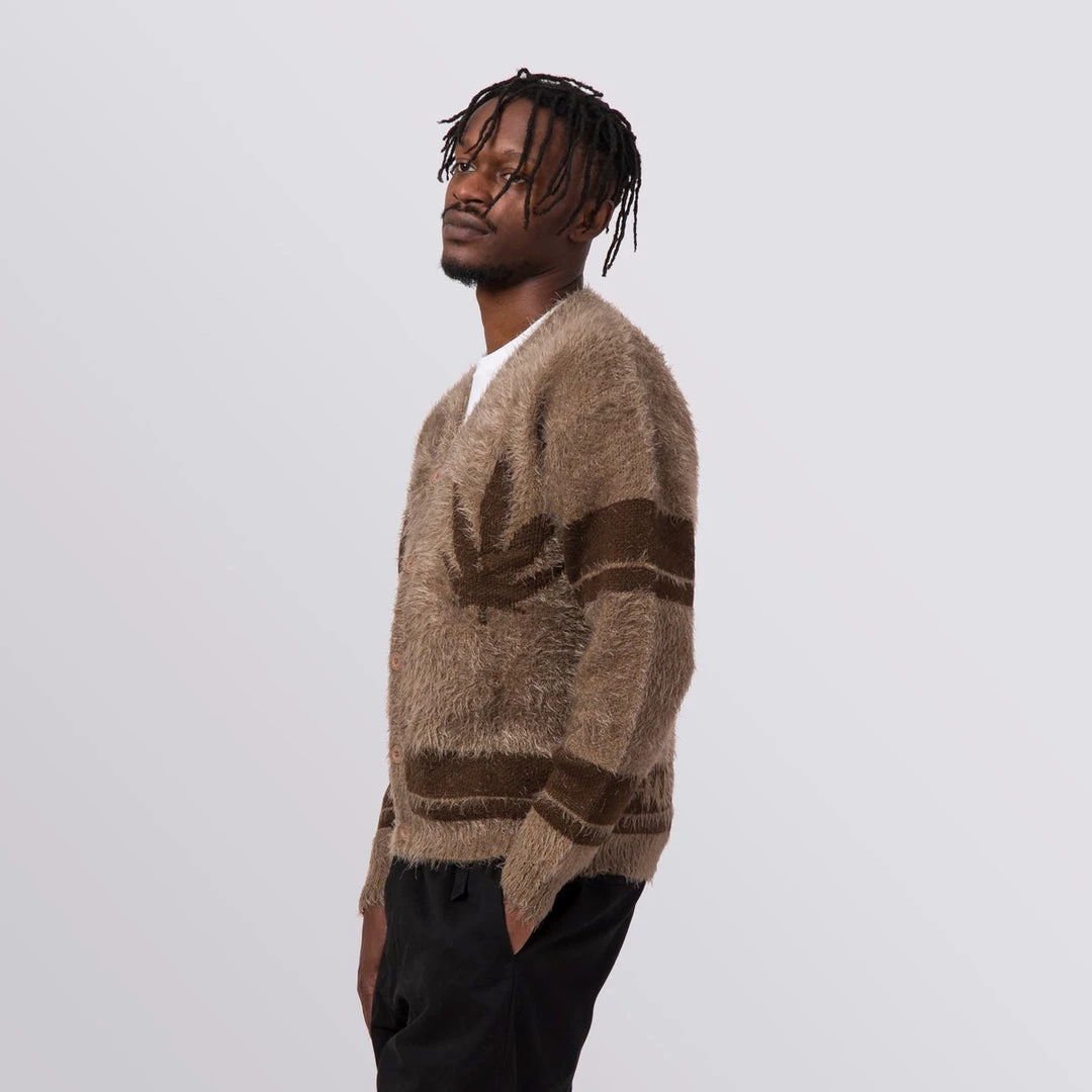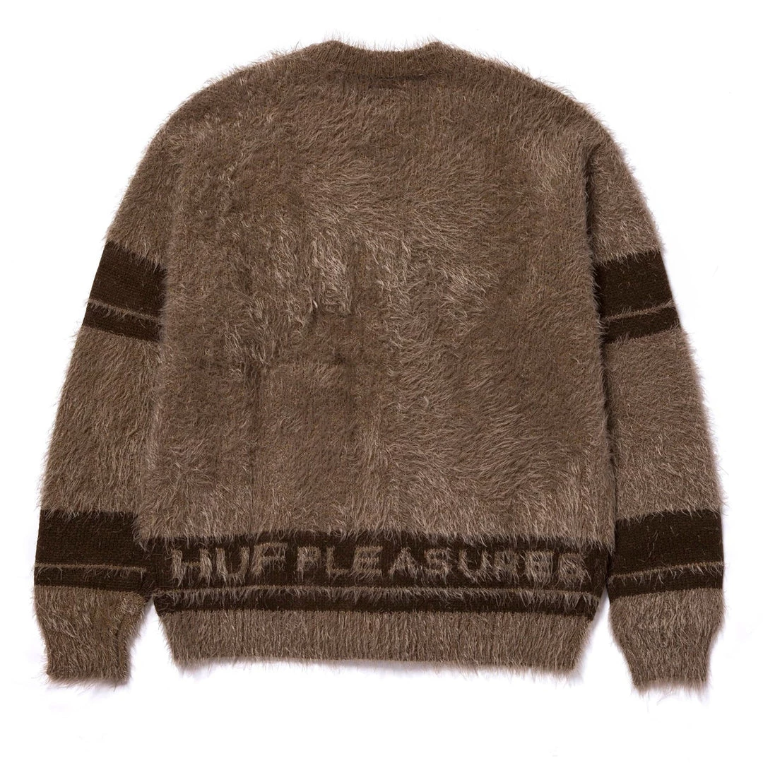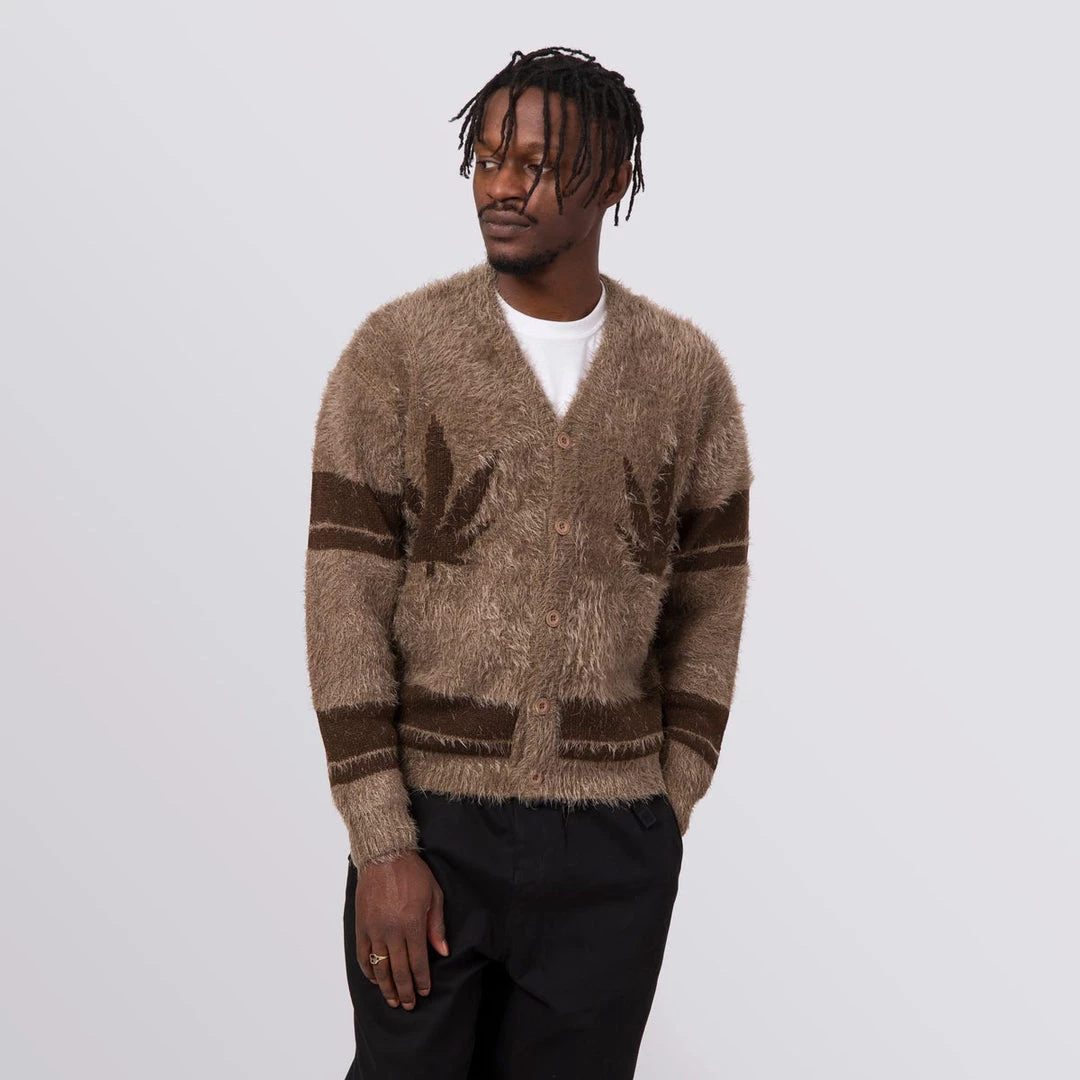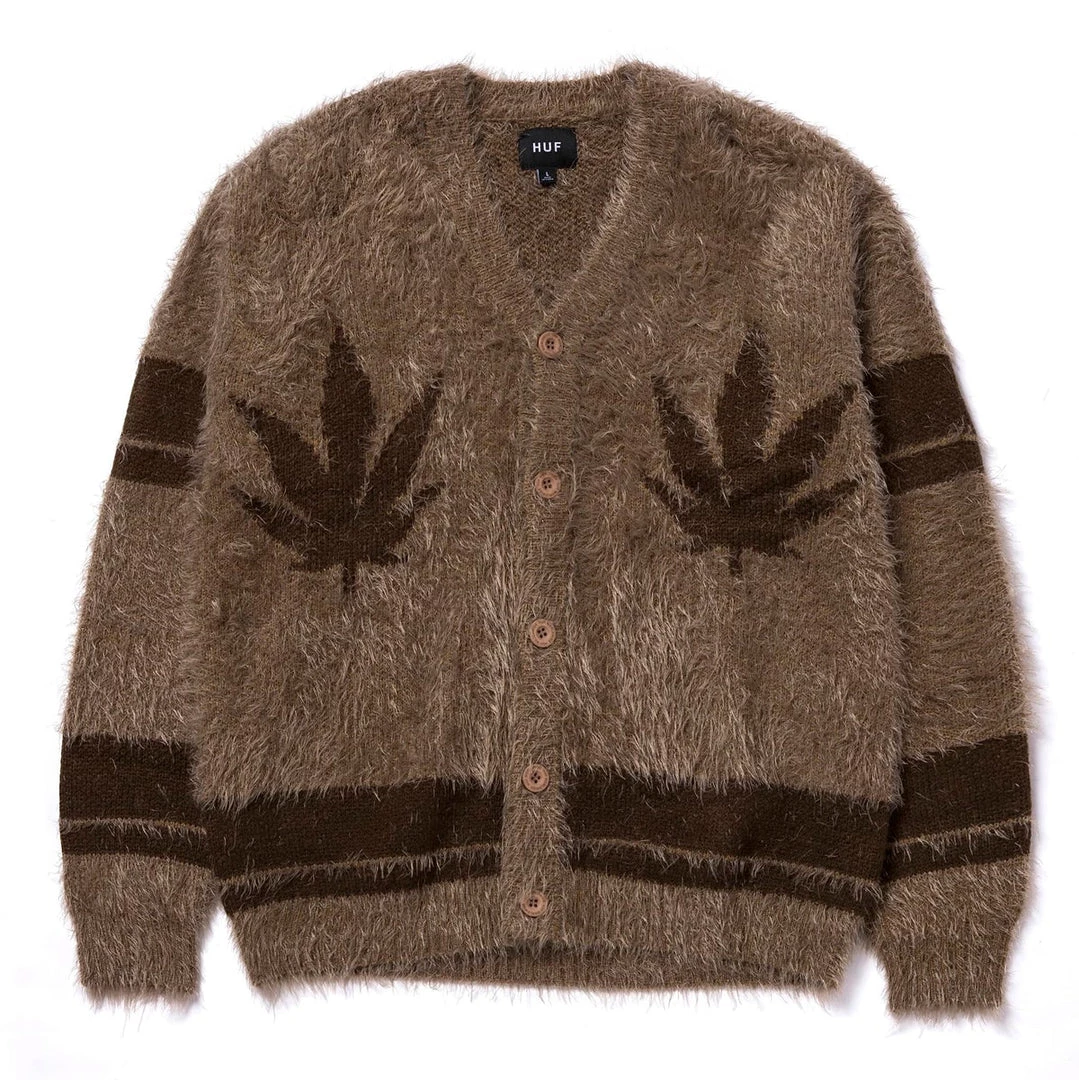 The HUF x Pleasures Limited Collection celebrates the nostalgia of the 1990’s. This grunge inspired cardigan is made of soft faux mohair with HUF Worldwide engraved button closure. Features custom jacquard knit HUF Plantlifeâ„¢ leaves on the chest and striped accents. Collaborative logo lockup on the rear waist and 2×2 ribbed trim at the cuffs and hem.
