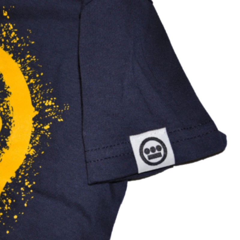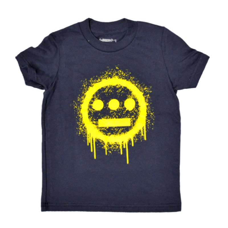 Dripping yellow Hiero logo on a navy tee.