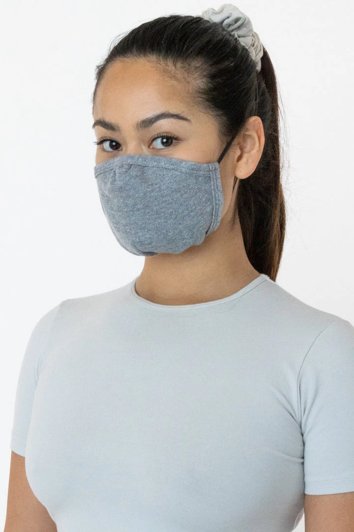 100% cotton face mask which features an adjustable nose that you can form to the contours of your face. 2 straps to be worn around the head and neck that can be tied and tightened to preferred fit. Mask is made of a thick French Terry fabric.