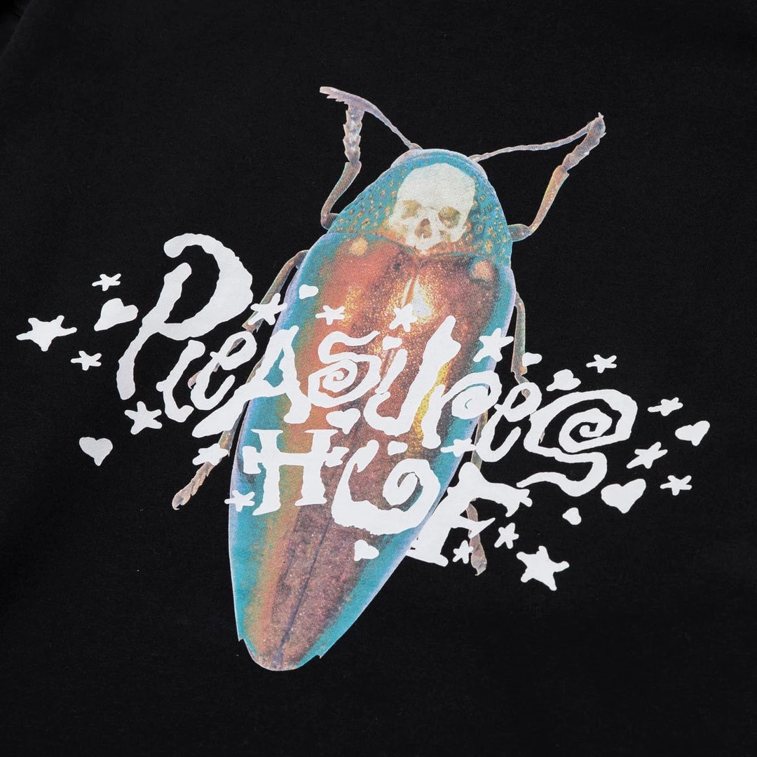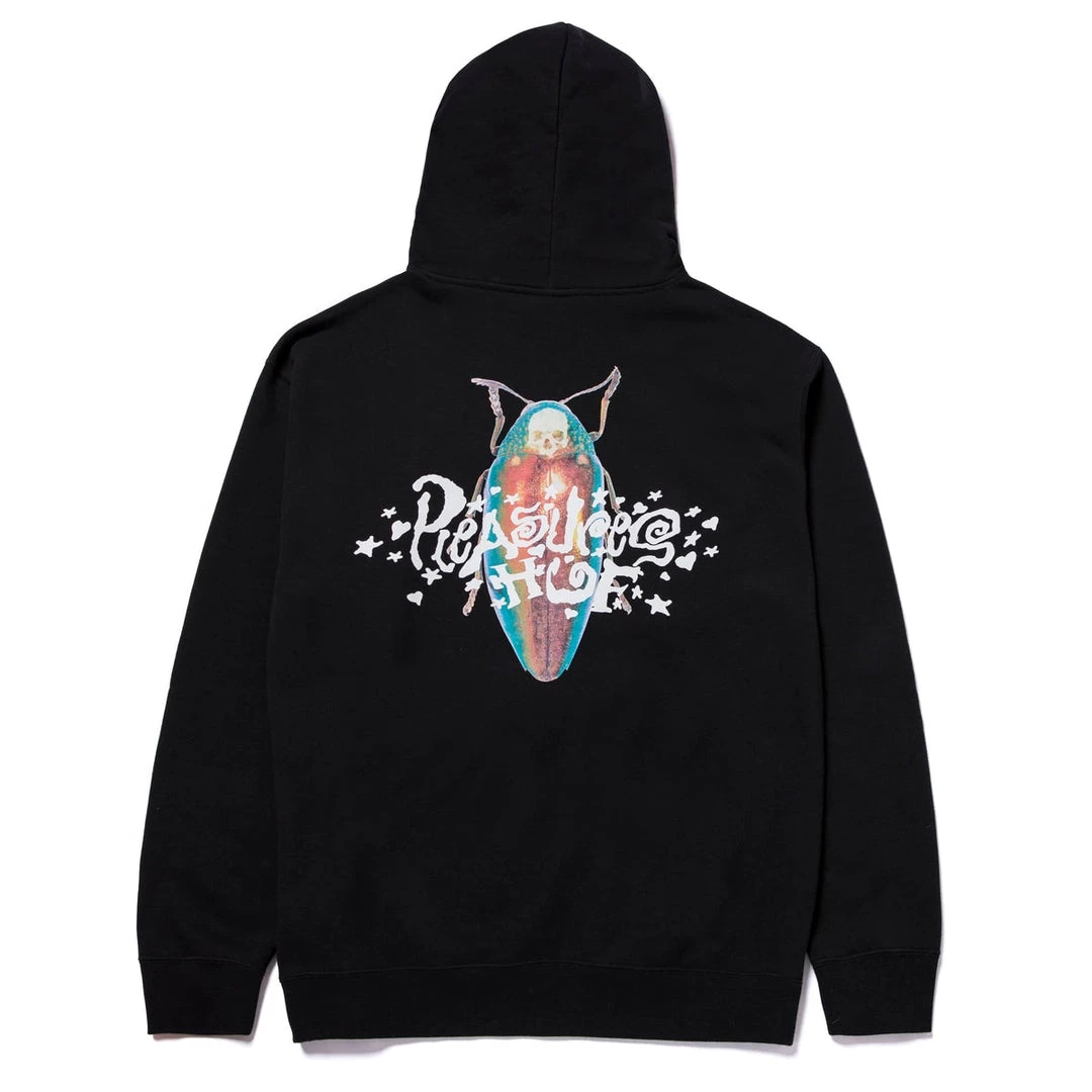 The HUF x Pleasures Limited Collection highlights the nostalgia of the 90’s and the disrespect for authority. Heavyweight fleece hoodie features collaborative beetle artwork on the back and logo lockup on the left chest. Kangaroo handwarmer pocket, double layer hood, and adjustable drawcord round out this collectible must have.