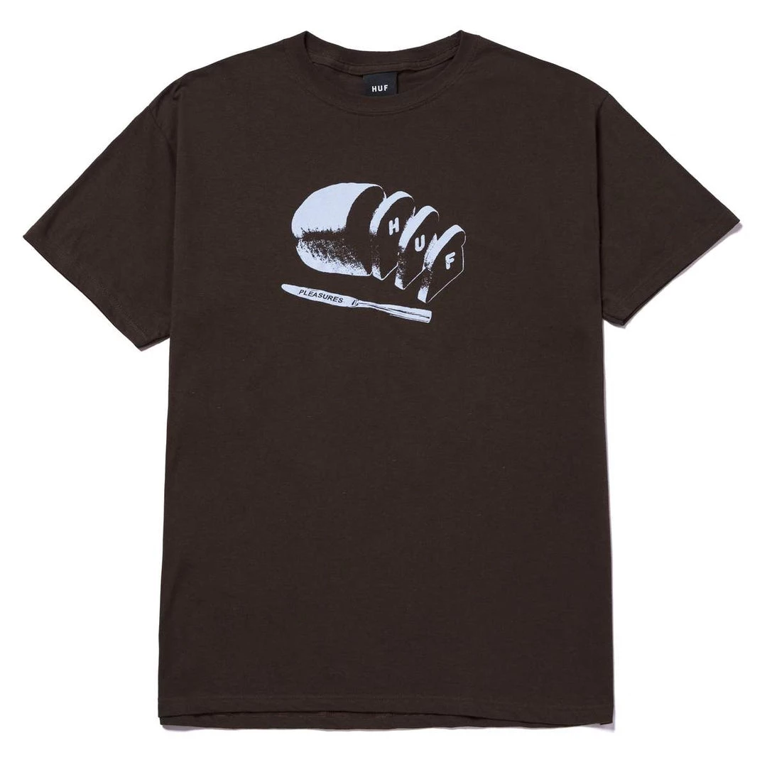 Last night I dreamt that I was somebody else…  The Breaking Bread Tee is part of the HUF x Pleasures limited edition collection. Features collaborative branded artwork on the front and back to highlight the gathering of friends.  HUF woven label at interior neck of a custom chocolate tee.