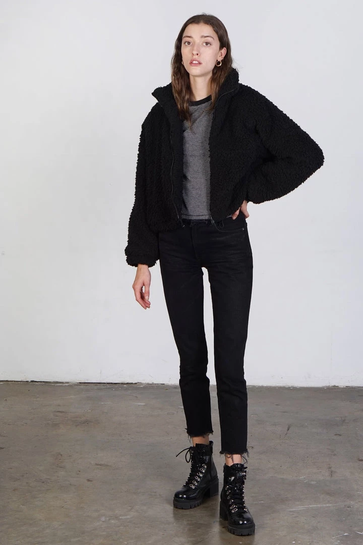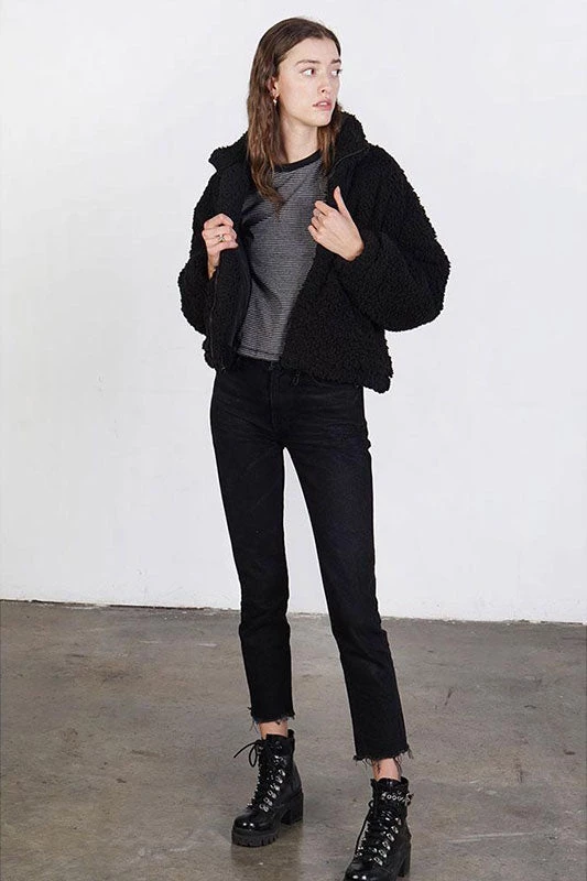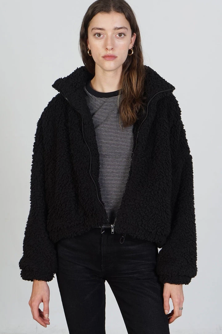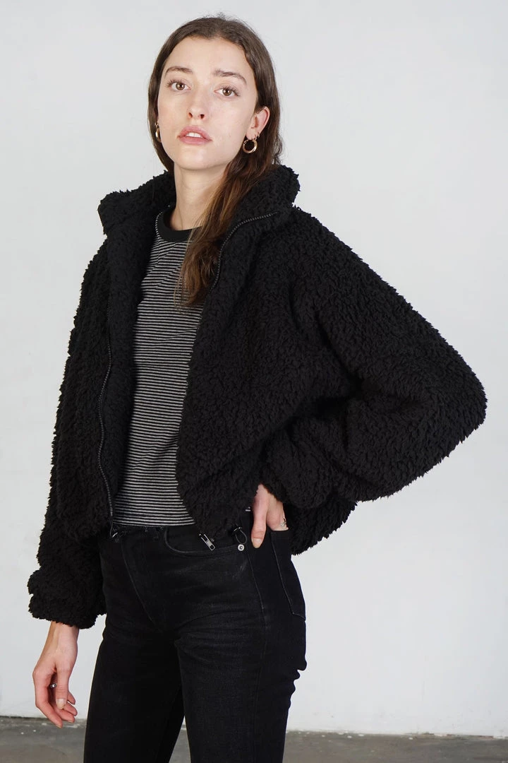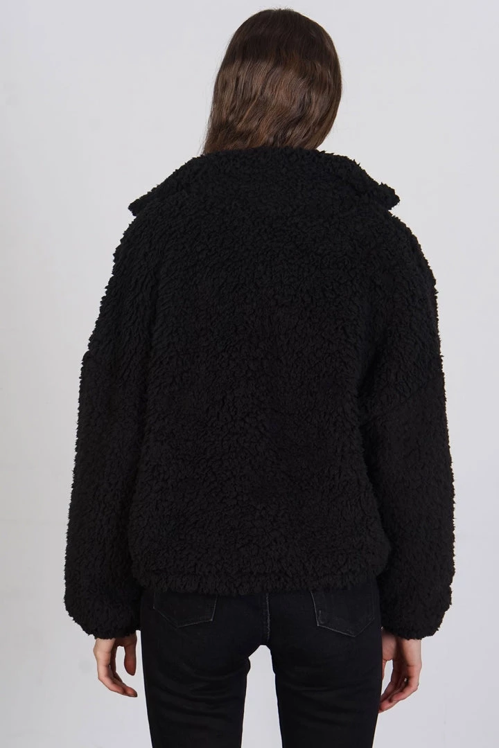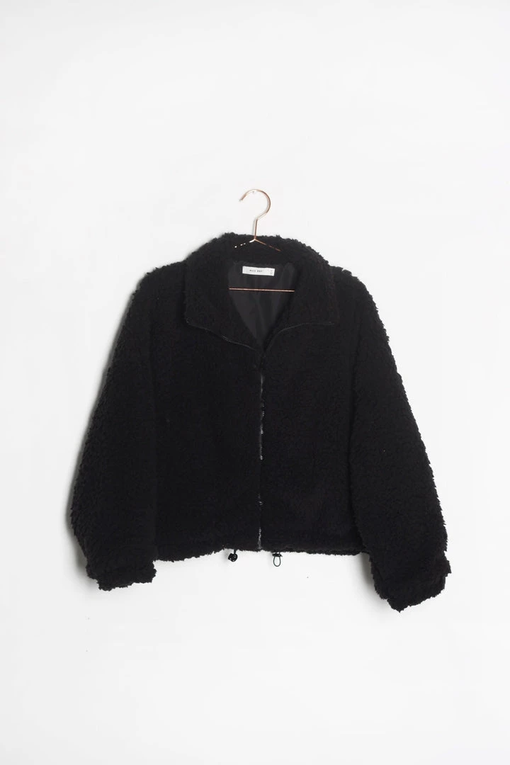 Cozy black sherpa jacket. Zip closure. Lined.