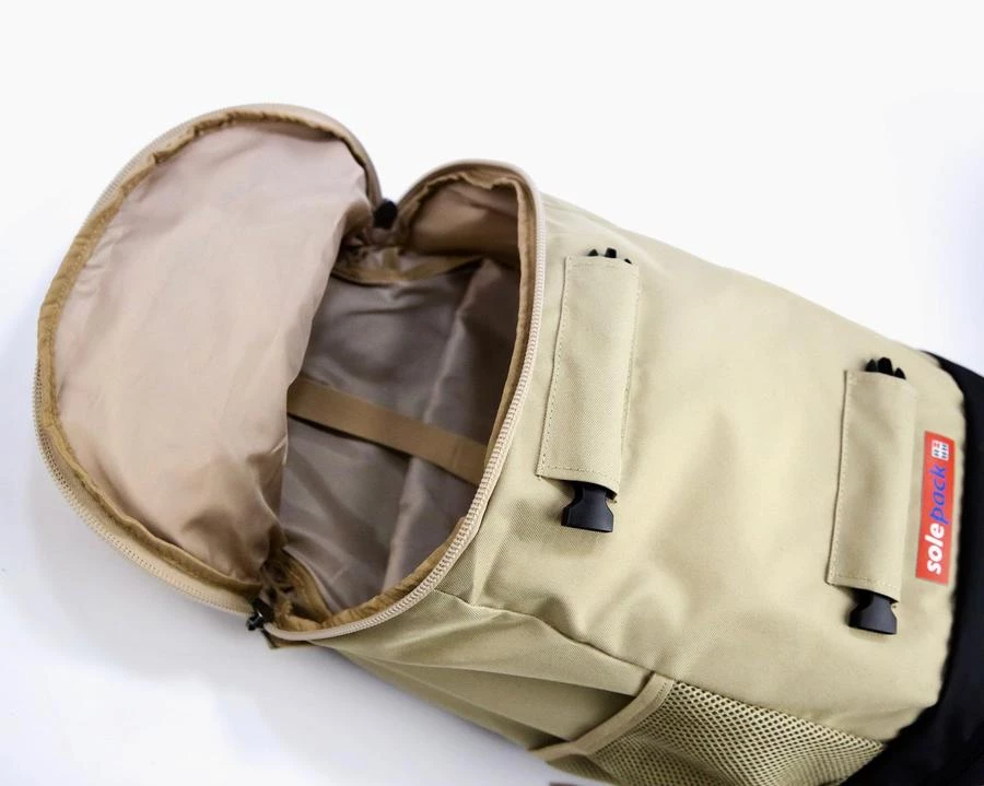 The OMEGA is a stand alone backpack in its own right but with attachments specifically for the SP-1s to attach. With a 30L capacity, its designed to keep you well packed for a busy day or a long weekend trip. Features include: retractable front buckles for SP-1 attachment, rear tunnels for maximal backstrap security, top loading bag with a zipper pocket on the lid and on the side, a side water bottle mesh pocket, chest strap, and a multipurpose bottom compartment for anything from a basketball to dirty clothes to another pair of shoes or slides.Â