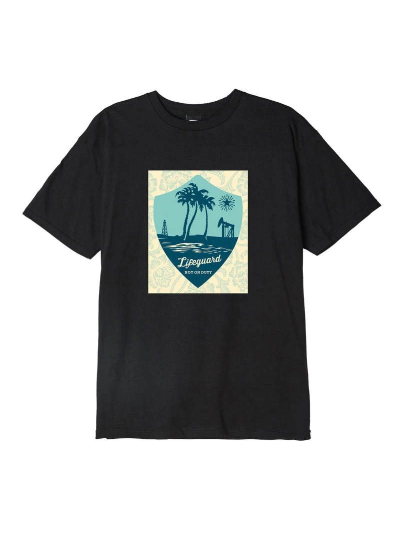 Originally a fine art piece from Shepard Fairey’s exhibition, Power & Glory. Fairey showcases the ways in which fossil fuels are symbol of the good and bad that drives the American economy. Features oil towers among the palm trees. Regular fit tee in heavyweight cotton jersey.