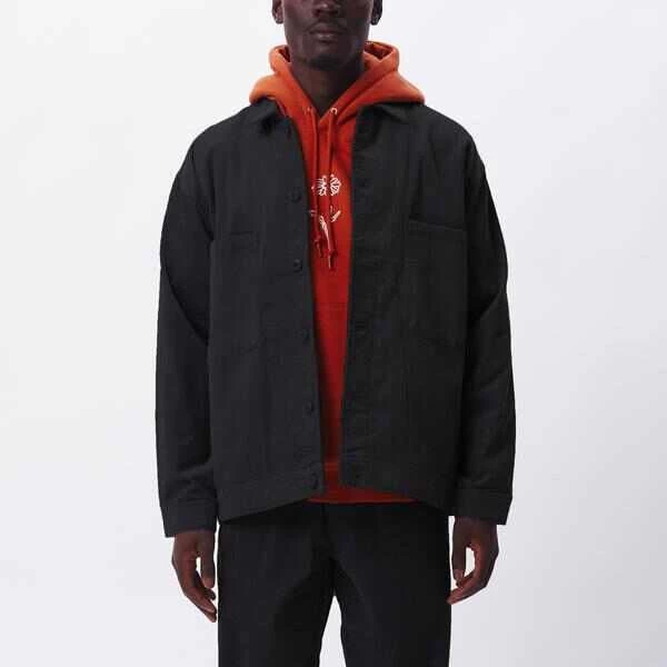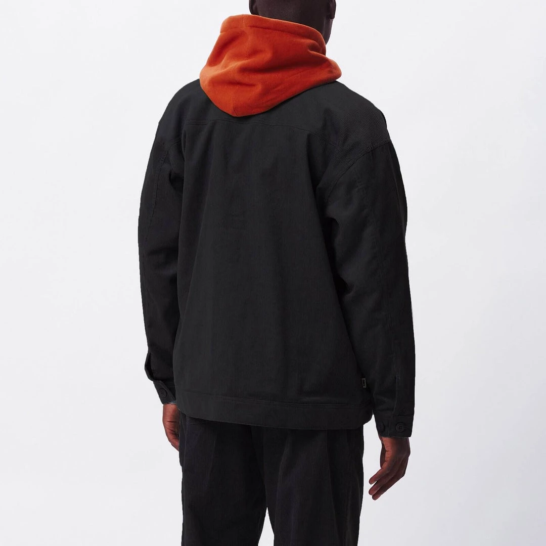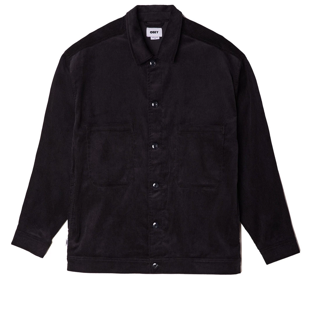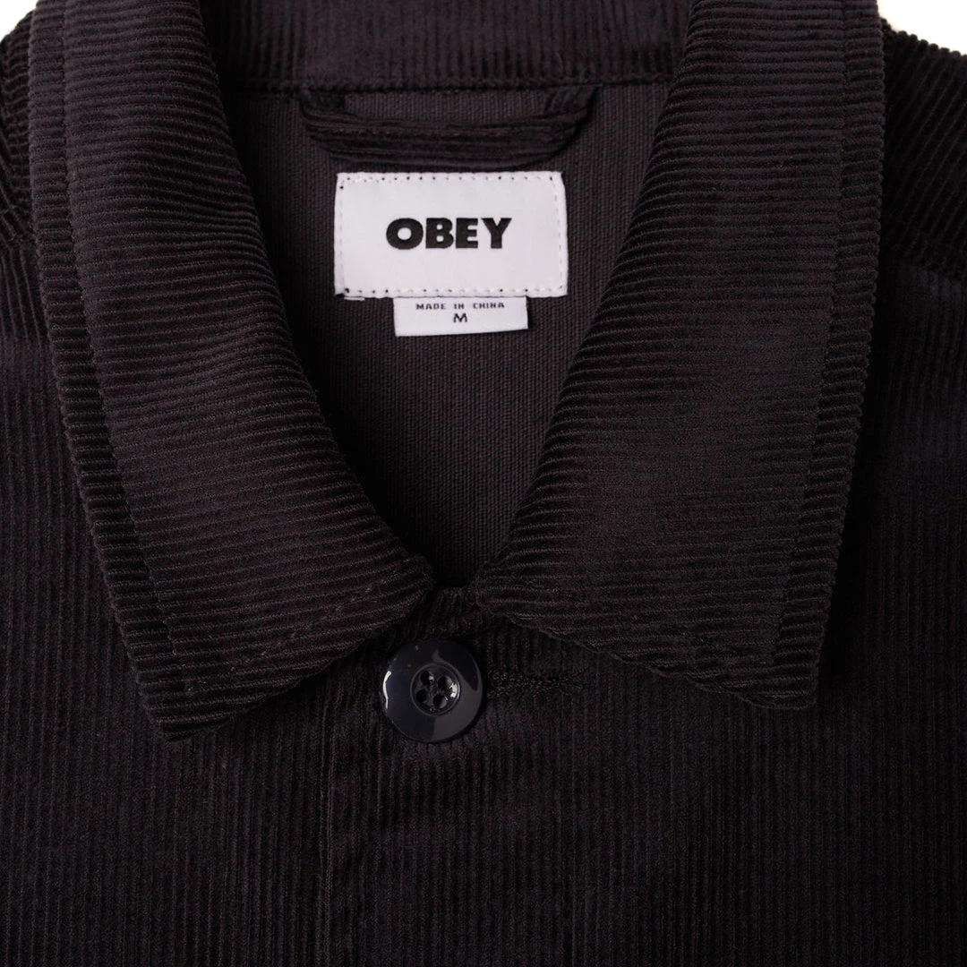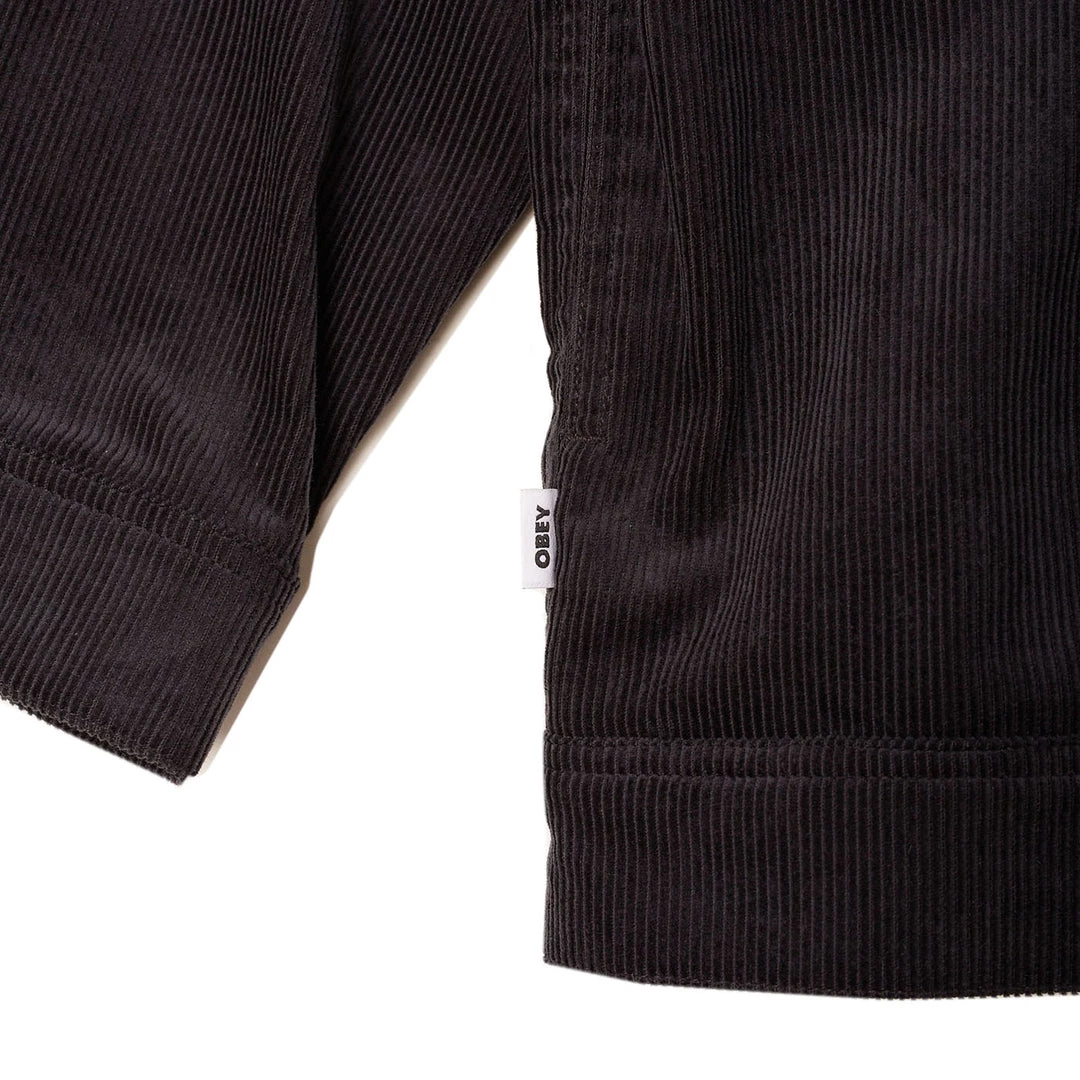 Regular fit corduroy jacket with button closure. Custom OBEY label on side and lowered pockets.
