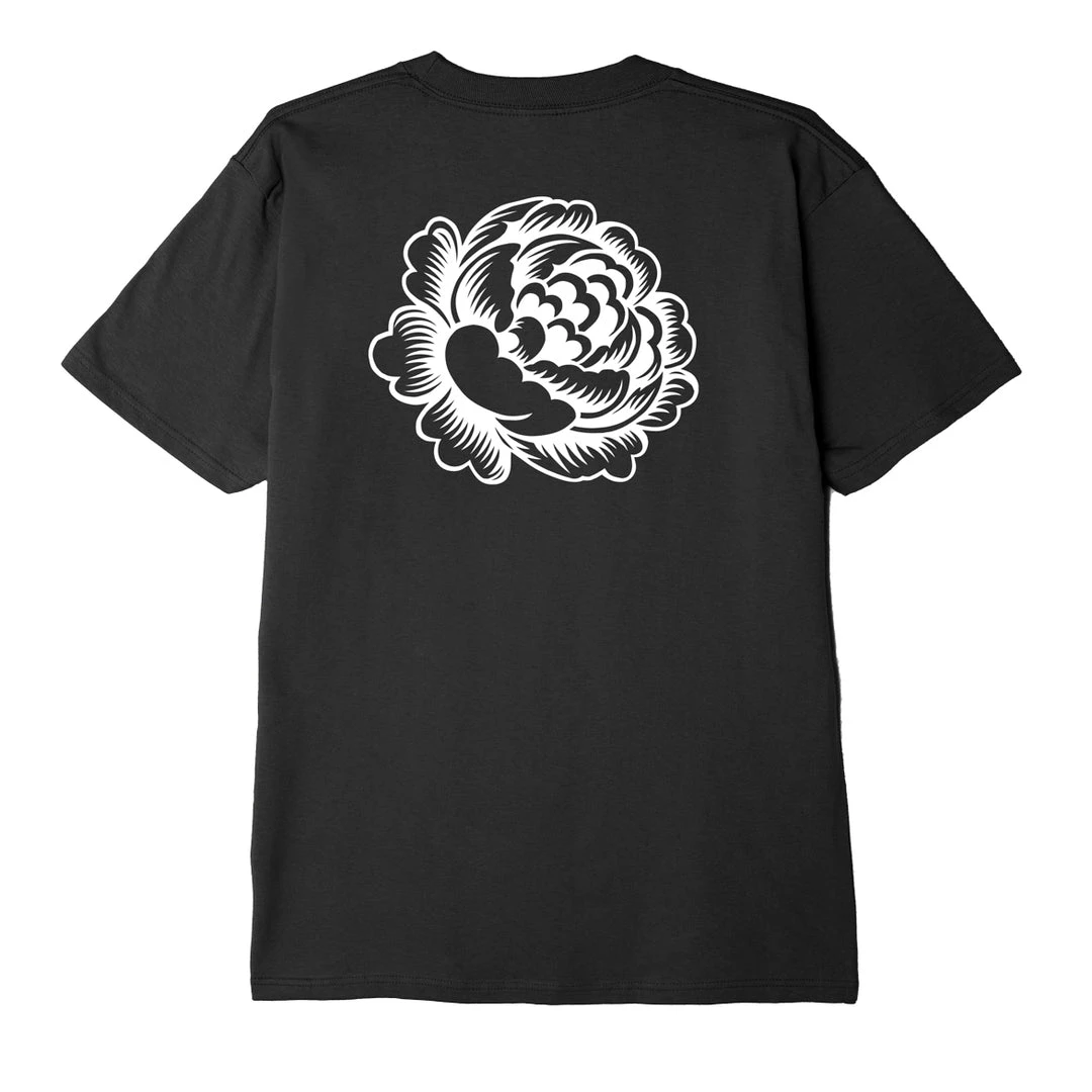 Black tee with large flower print design on the back and small left chest “OBEY” print. Regular fit classic tee in heavyweight cotton jersey.Â