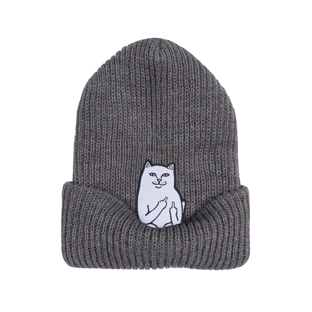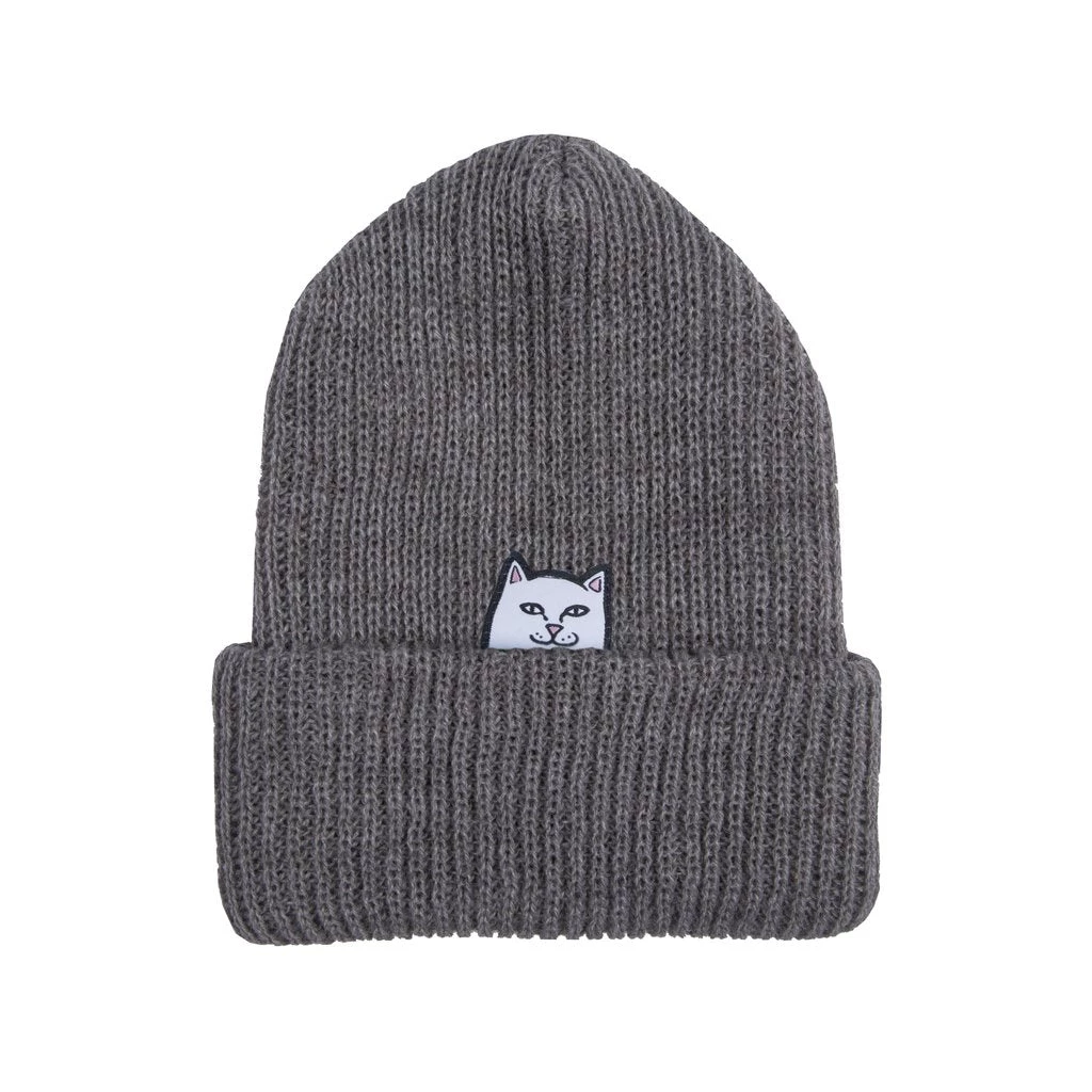 Ribbed acrylic beanie in gray. Features custom Nermal patch underneath the cuff.Â