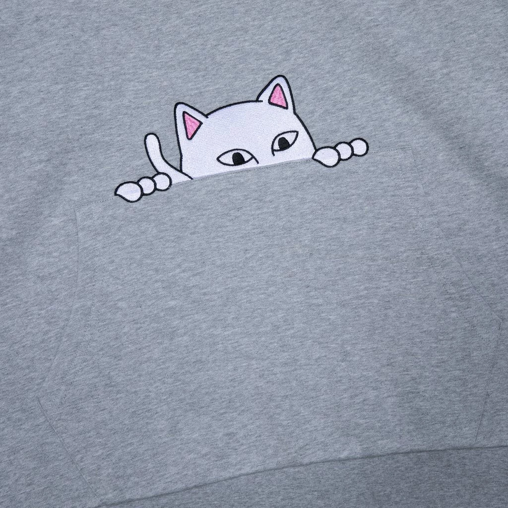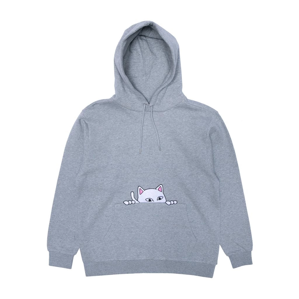 Lord Nermal is on the watch and staying undercover as he falls into a new season. Features an embroidered Nermal peeking out from the kangaroo pocket.  Classic heather grey fleece with an adjustable hood. Â