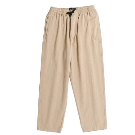 Cotton twill pant with elastic drawstring waistband and tonal Quiet Life embroidery. Features two side front pockets, two back pockets, and custom label on back. Â
