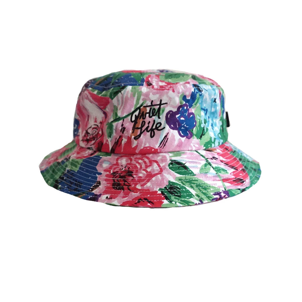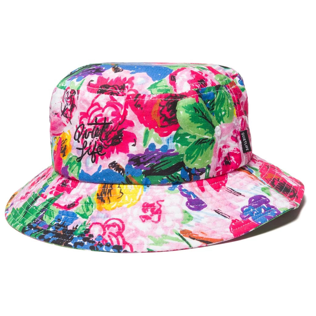 Stop and smell the flowers. Limited edition floral graphic pattern by artist Eric Kenney. Floral cotton custom fabric with direct logo embroidery. Woven clip label on side and woven eyelets.