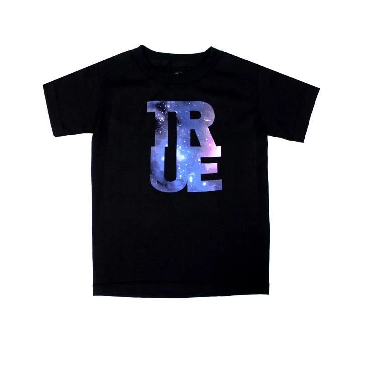 Classic TRUE logo in block lettering with galaxy detailing.